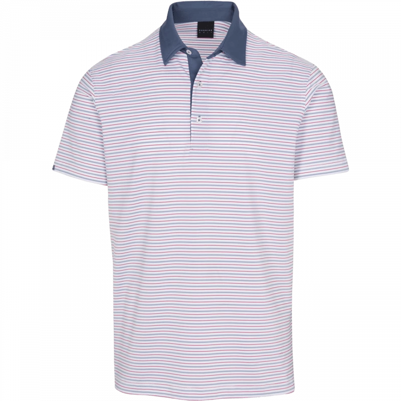 Engineered ventilation and COOLMAX® permanent moisture management showcase the Dunning Difference in the Elswick stripe performance polo. A contrast collar and placket will have you looking as cool as you feel.